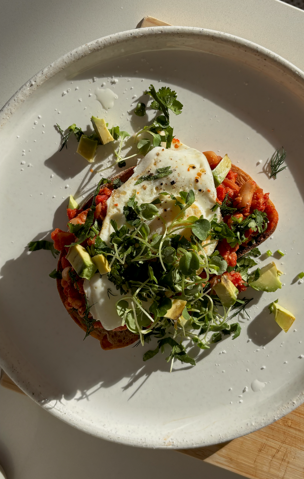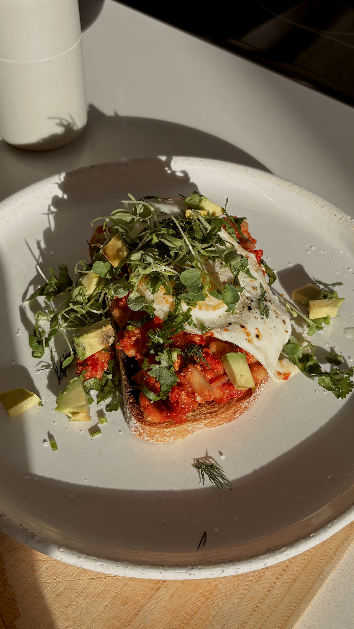 Smoky Roasted Pepper Baked Beans & Egg on Toast